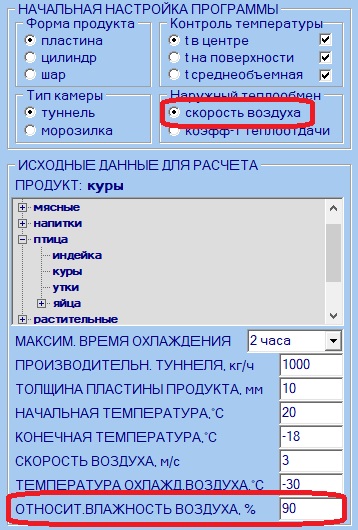 Заполнение значения "ОТНОСИТ.ВЛАЖНОСТЬ ВОЗДУХА, %" доступно только, если в разделе "Наружный теплообмен" в качестве определяющего фактора была выбрана "скорость воздуха":